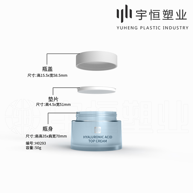 编号:H0287、H0293、H0294,容量:100g、50g、30g,瓶身材质:PP,用途:膏霜、面膜、眼霜